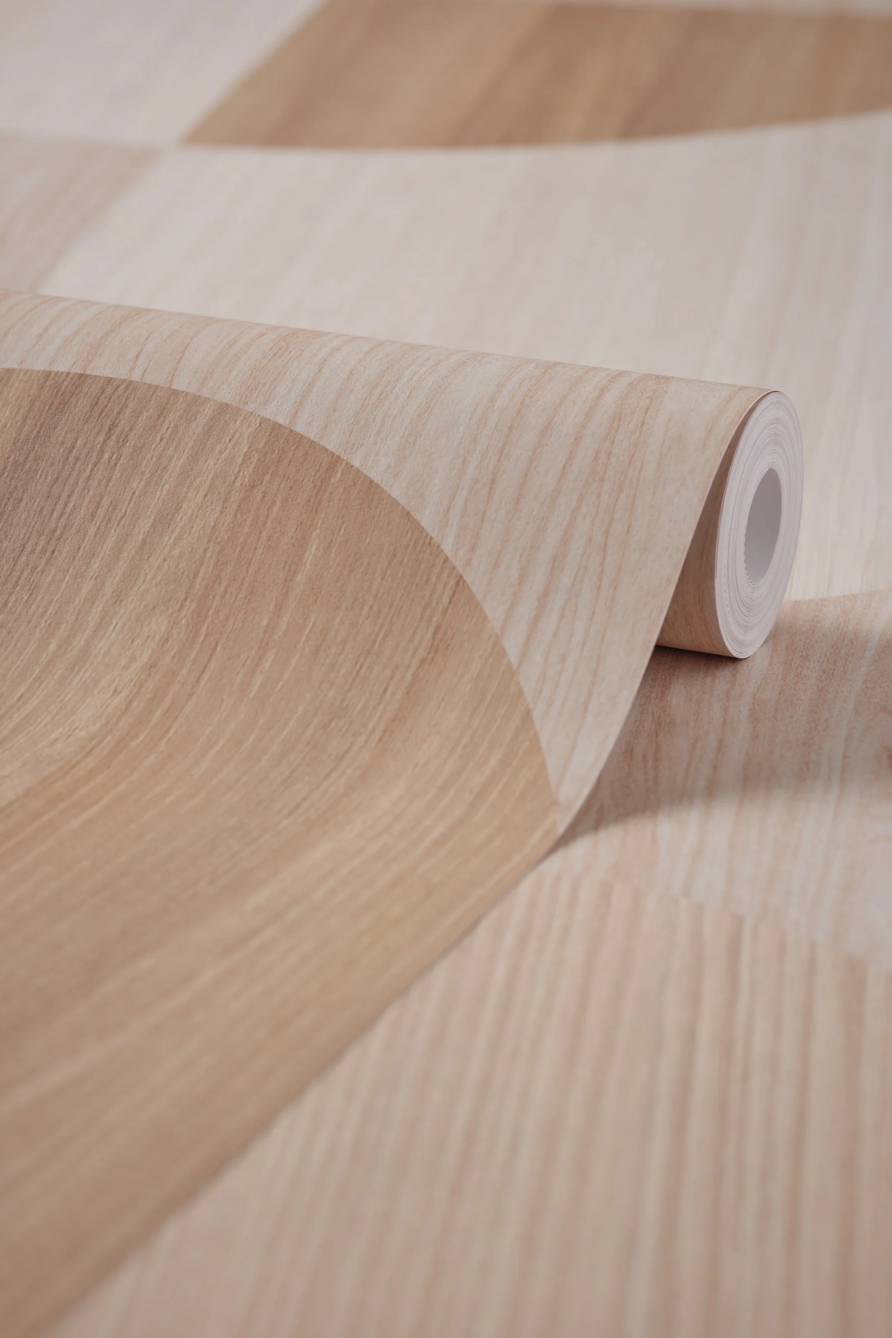 Arches is a warm, wood-inspired mural that reimagines mid-century paneling through a modern, design-forward lens. Drawing from vintage wood treatments of the 1960s and ’70s, the design began with hand-drawn studies of grain and form, later developed using sourced imagery of real mahogany and oak. The result is a series of arching wood panels that feel both grounded and architectural, equal parts nostalgia and reinvention. Offered in two colorways: a rich, moody mahogany that adds depth to studies or dens, and a lighter white oak that brightens living rooms, bedrooms, or accent walls with an airy, Scandinavian sensibility.