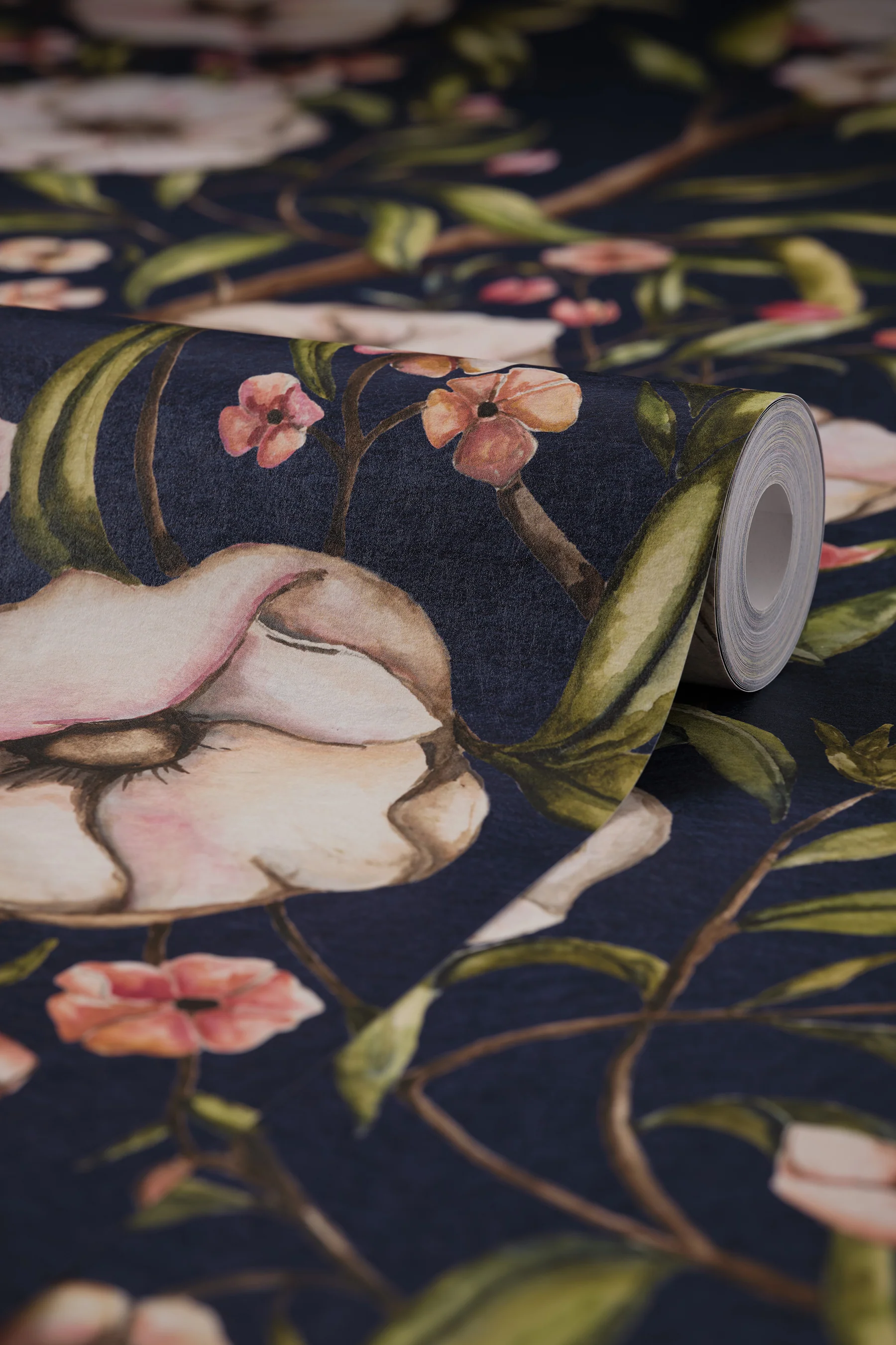 Emma is a hand painted bold watercolor floral that embraces both movement and femininity. Inspired by vintage botanical drawings, the design balances classic influence with a fresh, contemporary edge. Emma brings an expressive softness to any space and plays beautifully with other patterns, from tailored stripes to playful dots.